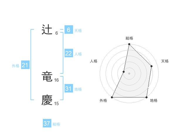 辻 竜慶さんの外格は21画の5点!