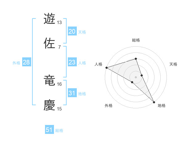 遊佐 竜慶さんの総格は51画の3点!