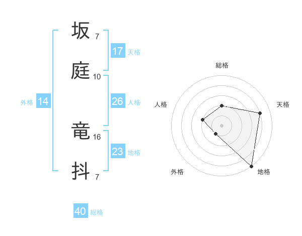 坂庭 竜抖さんの地格は23画の5点!