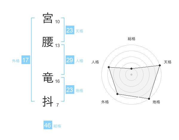 宮腰 竜抖さんの総格は46画の1点!