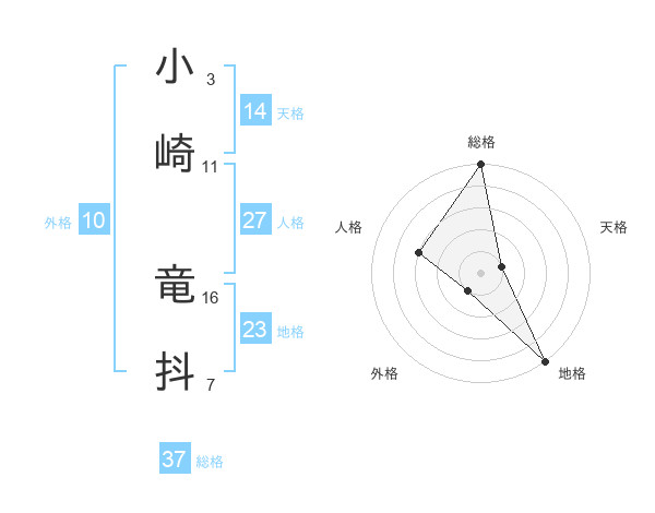 小崎 竜抖さんを姓名の画数から五運を鑑定