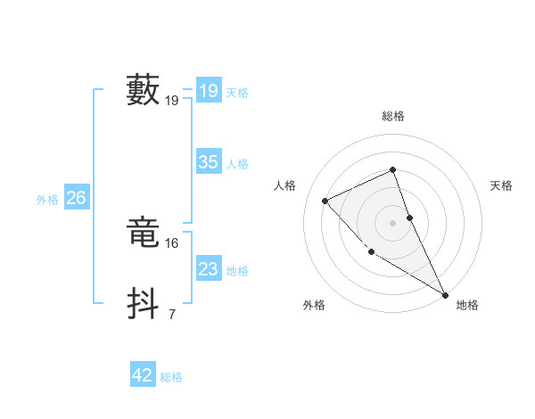 藪 竜抖さんを姓名の画数から五運を鑑定