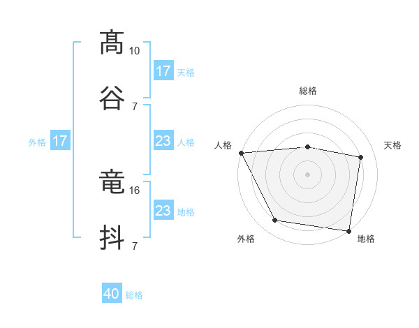 髙谷 竜抖さんを姓名の画数から五運を鑑定