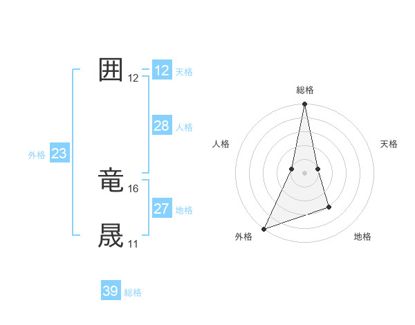 囲 竜晟さんを姓名の画数から五運を鑑定