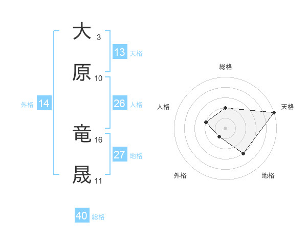 大原 竜晟さんの天格は13画の5点