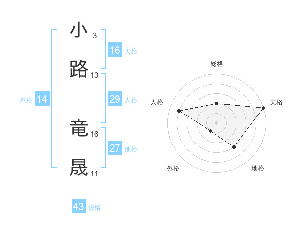 小路 竜晟さんの天格は16画の5点!