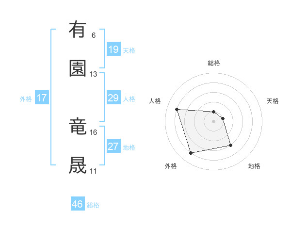 有園 竜晟さんの総格は46画の1点!