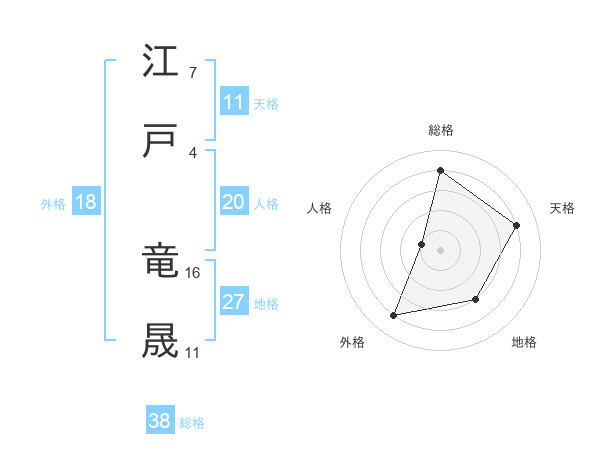 江戸 竜晟さんの総格は38画の4点!
