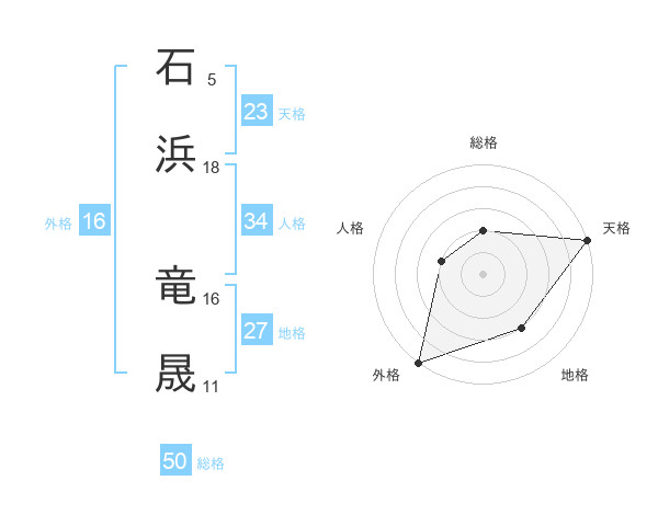 石浜 竜晟さんを姓名の画数から五運を鑑定