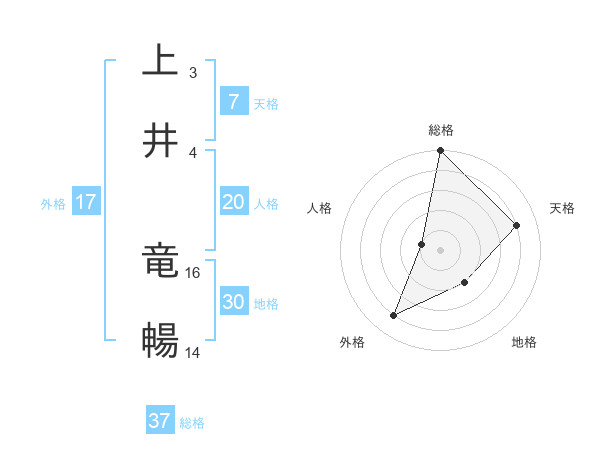 上井 竜暢さんを姓名の画数から五運を鑑定