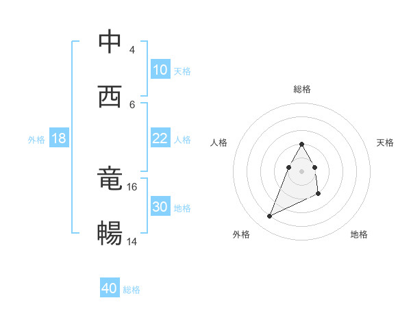 中西 竜暢さんの総格は40画の2点!