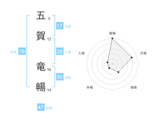 五賀 竜暢さんを姓名の画数から五運を鑑定