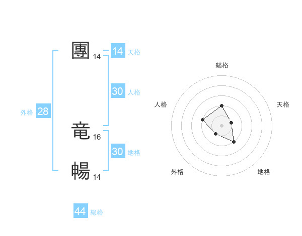 團 竜暢さんの総格は44画の2点!