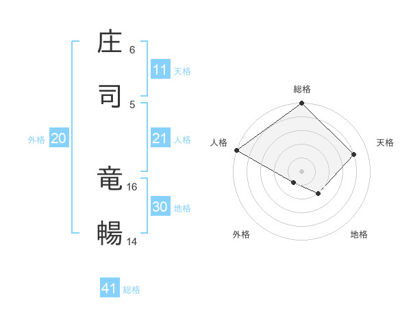 庄司 竜暢さんを姓名の画数から五運を鑑定