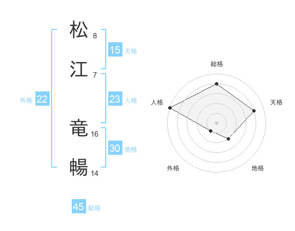 松江 竜暢さんを姓名の画数から五運を鑑定