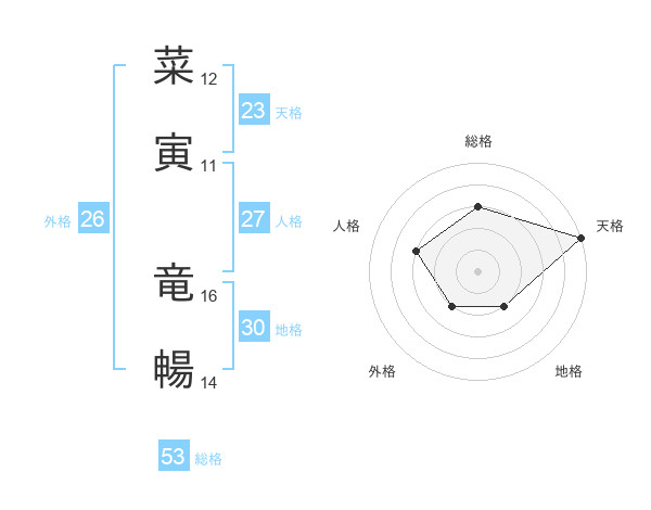 菜寅 竜暢さんの総格は53画の3点!