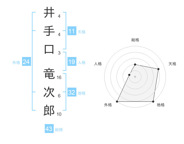 井手口 竜次郎さんを姓名の画数から五運を鑑定