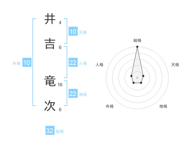 井吉 竜次さんの総格は32画の5点!