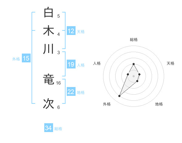 白木川 竜次さんの総格は34画の2点