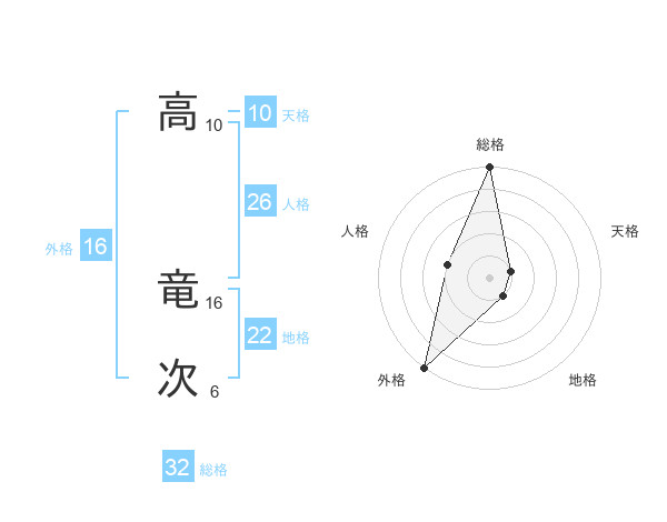 高 竜次さんの総格は32画の5点!