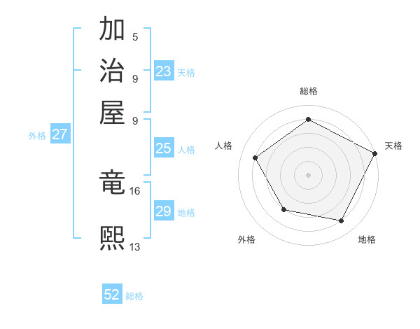 加治屋 竜煕さんを姓名の画数から五運を鑑定