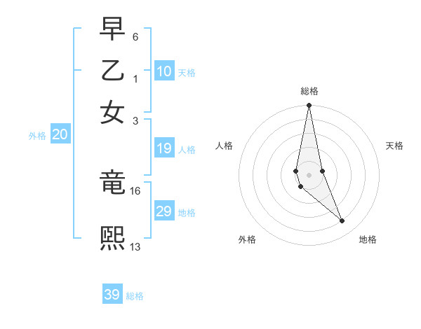 早乙女 竜煕さんを姓名の画数から五運を鑑定