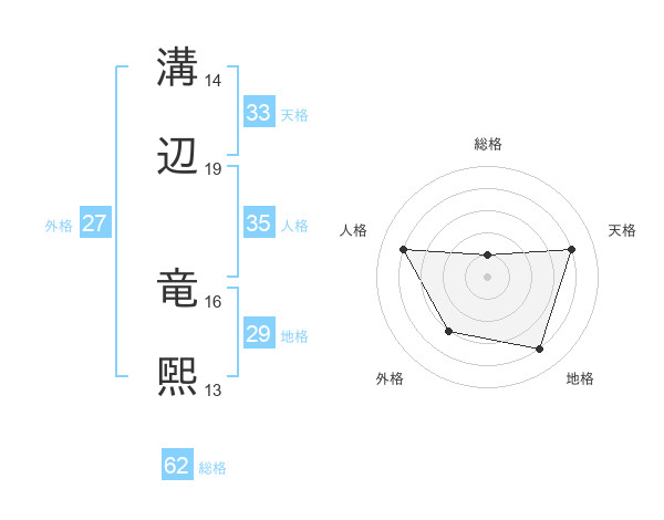 溝辺 竜煕さんの天格は33画の4点!