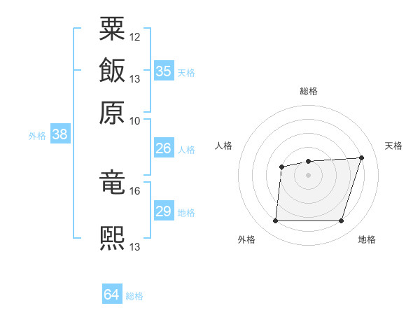 粟飯原 竜煕さんを姓名の画数から五運を鑑定