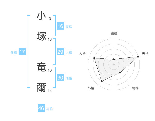 小塚 竜爾さんの天格は16画の5点!