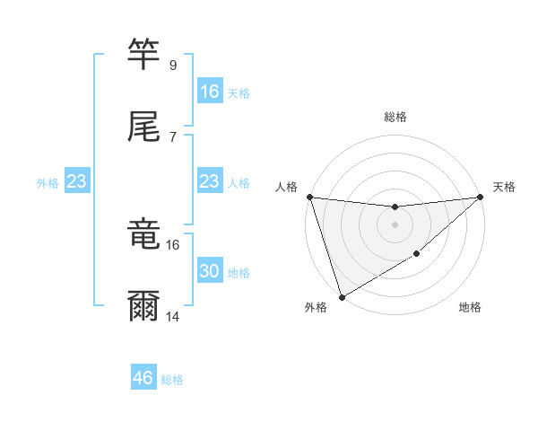 竿尾 竜爾さんの外格は23画の5点!