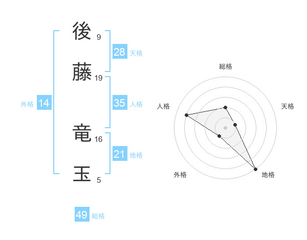 後藤 竜玉さんを姓名の画数から五運を鑑定