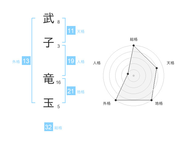 武子 竜玉さんの総格は32画の5点!