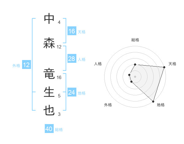 中森 竜生也さんを姓名の画数から五運を鑑定
