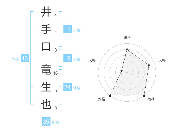 井手口 竜生也さんを姓名の画数から五運を鑑定