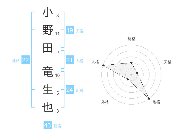 小野田 竜生也さんの外格は22画の1点!