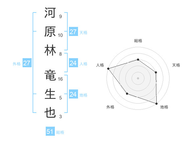 河原林 竜生也さんを姓名の画数から五運を鑑定