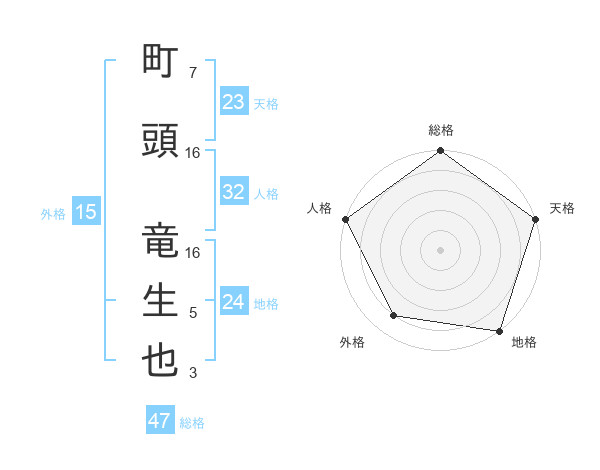 町頭 竜生也さんの総格は47画の5点!