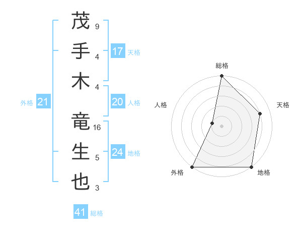 茂手木 竜生也さんを姓名の画数から五運を鑑定