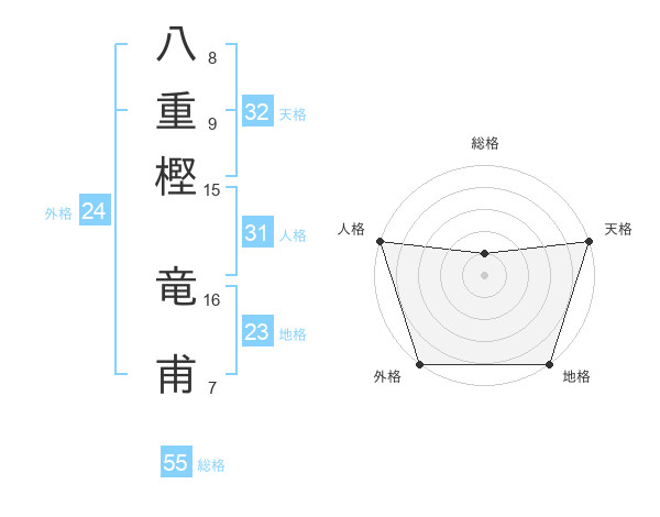 八重樫 竜甫さんの天格は32画の5点!