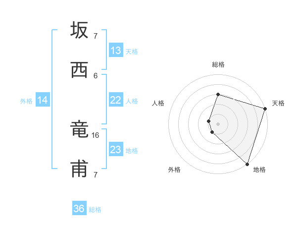 坂西 竜甫さんの天格は13画の5点!