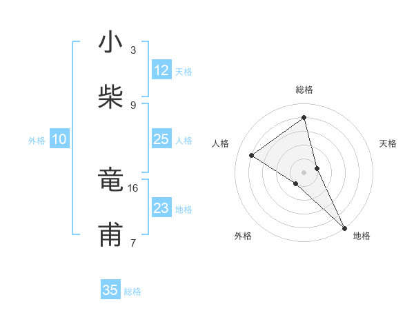 小柴 竜甫さんの総格は35画の4点!