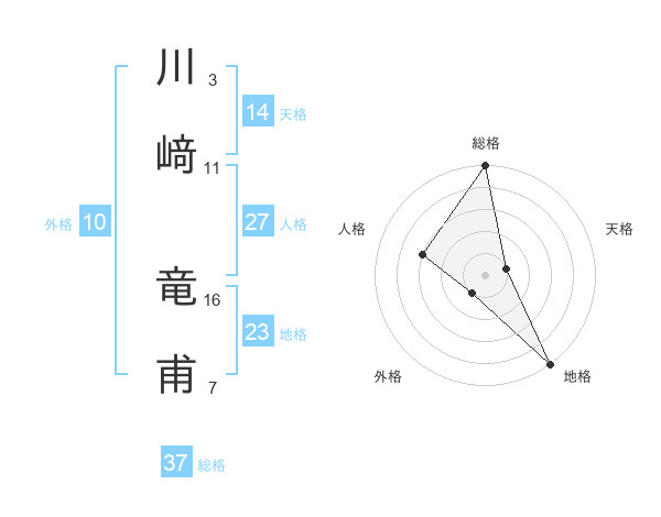 川﨑 竜甫さんの総格は37画の5点!