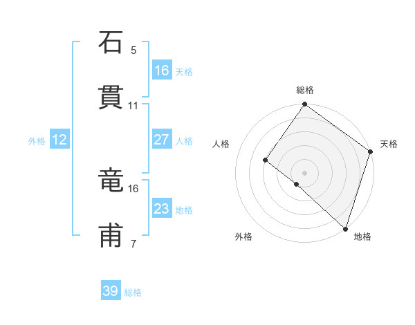 石貫 竜甫さんを姓名の画数から五運を鑑定