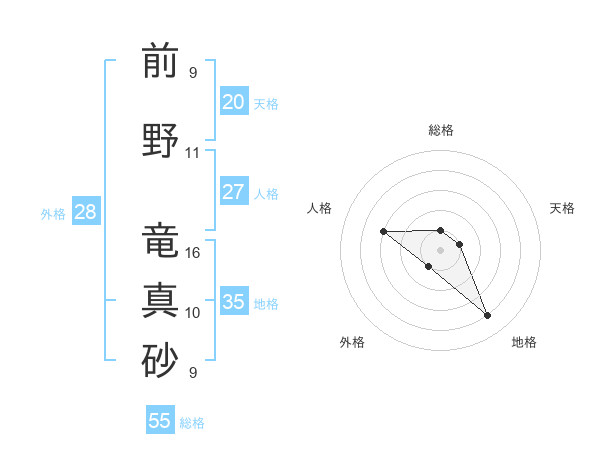 前野 竜真砂さんを姓名の画数から五運を鑑定