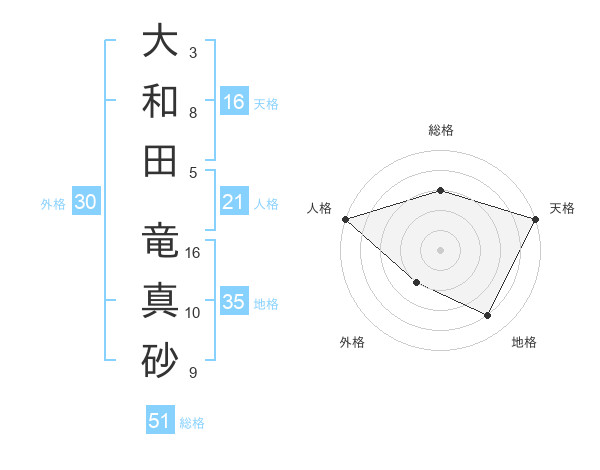 大和田 竜真砂さんを姓名の画数から五運を鑑定
