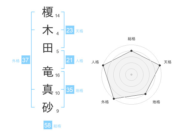 榎木田 竜真砂さんの外格は37画の5点!