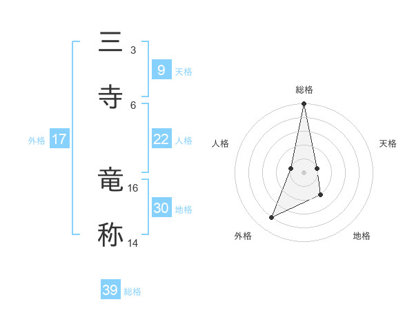 三寺 竜称さんの総格は39画の5点!