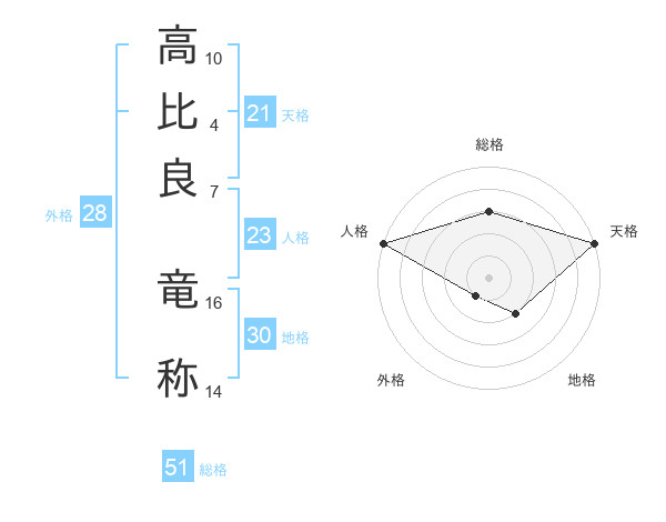 高比良 竜称さんを姓名の画数から五運を鑑定