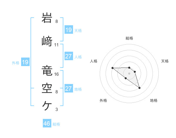 岩﨑 竜空ケさんを姓名の画数から五運を鑑定