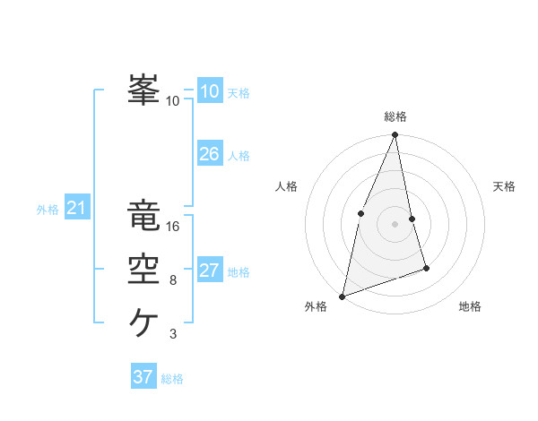 峯 竜空ケさんの総格は37画の5点!